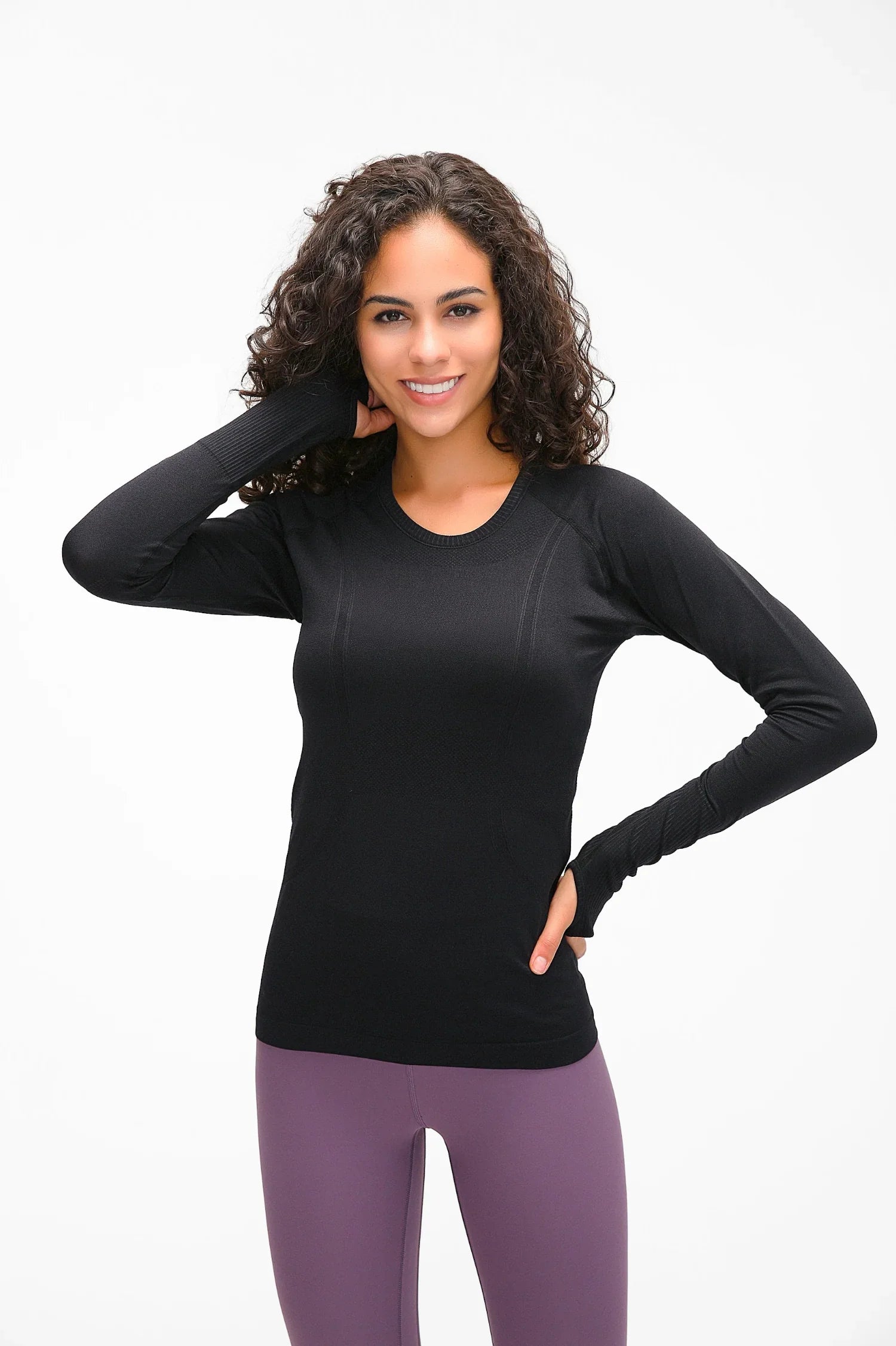 Haut d'entraînement sans coutures à manches longues pour athlète - Noir