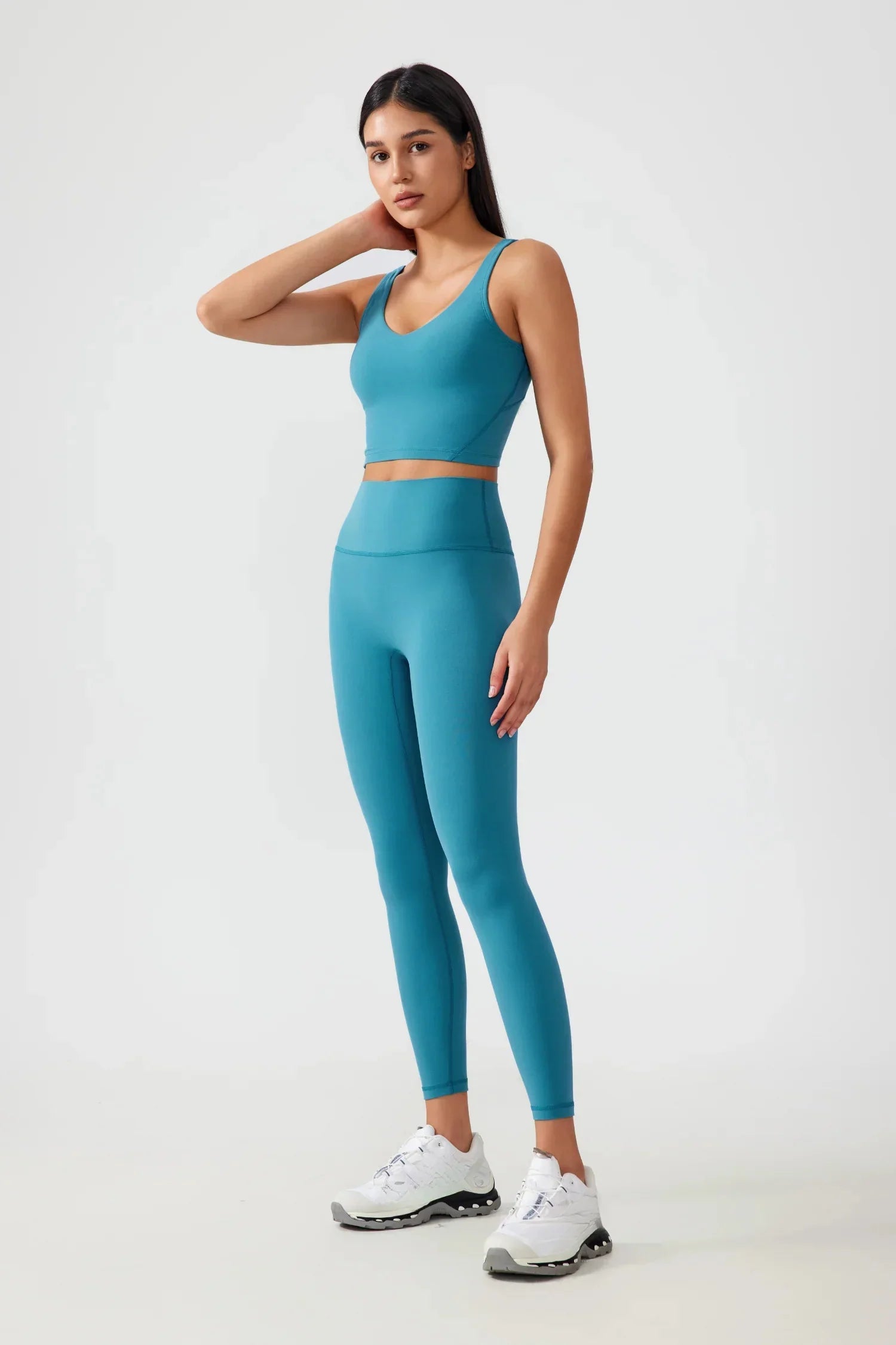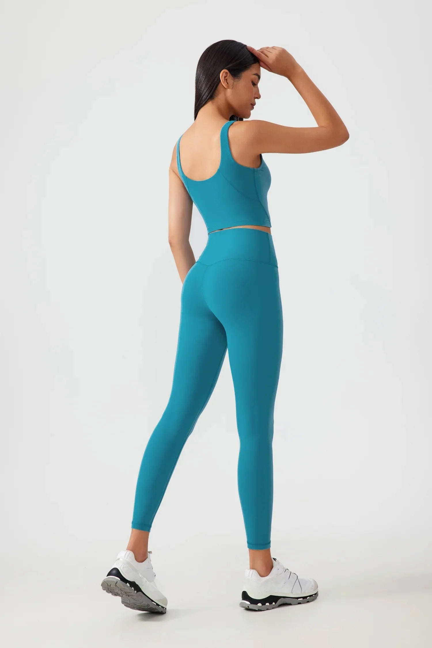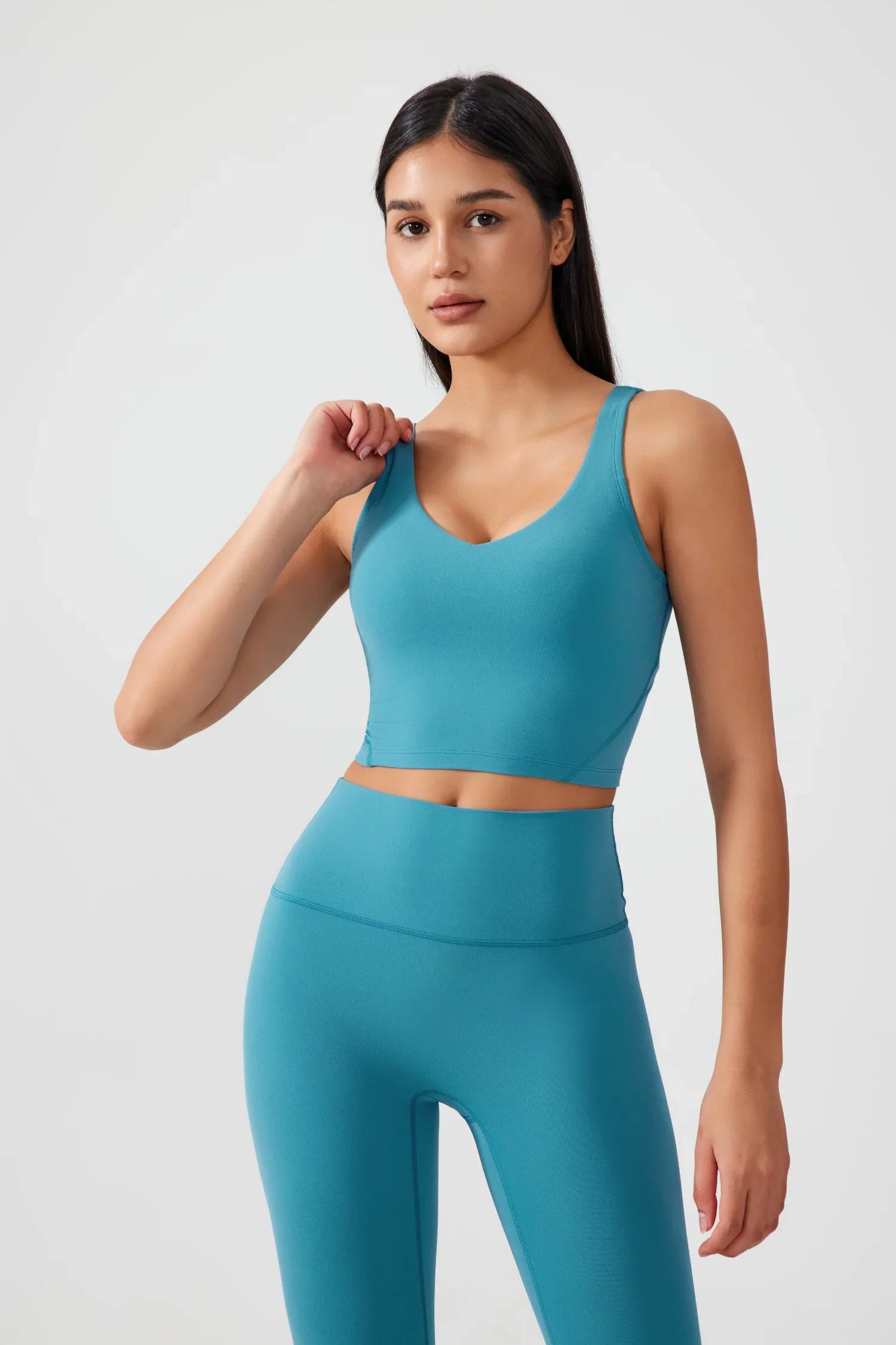 Débardeur de yoga court sans coutures - Bleu cyan