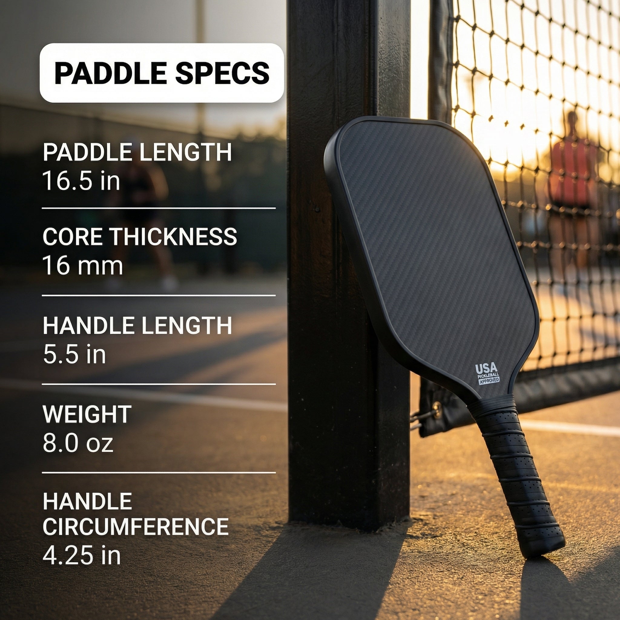 The paddle weighs 8.0 ounces, which makes it a medium-weight paddle. This weight provides a good balance of power and control, making it suitable for intermediate to advanced players. If you're a beginner, you might prefer a lighter paddle, but this one works great for players looking for a bit more power while maintaining control.
